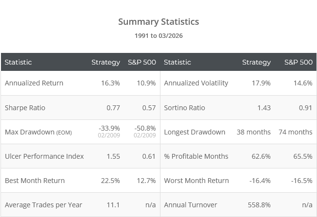 Backtested results from 1991 follow. Results are net of transaction costs – see backtest assumptions. Learn about what we do and follow 100+ asset allocation strategies like this one in near real-time.
