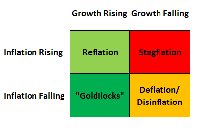 You’ve likely seen a matrix like the following, breaking down market regimes by growth and inflation: