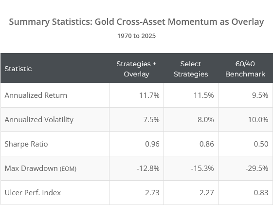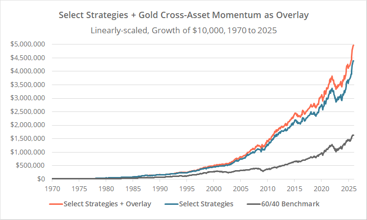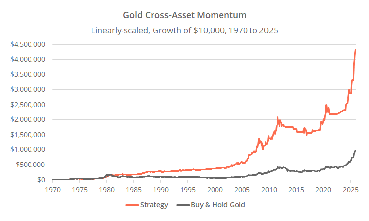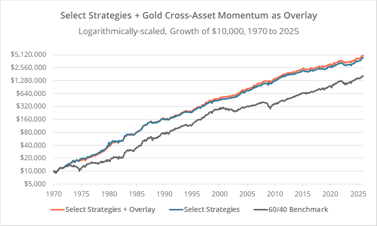 Is the juice worth the squeeze? In other words, is it worth the extra hassle of checking the cross-asset momentum strategy before confirming any gold signal? We can’t answer that for individuals. We can only model historical results.