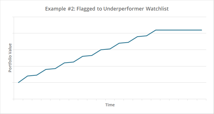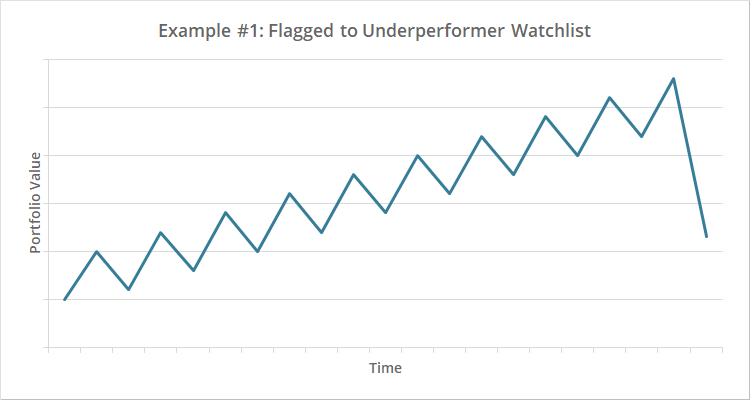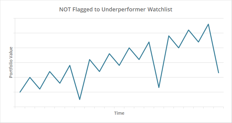 Note however that the UW is not based on loss alone. It’s based on any significant deterioration in performance. That means the following strategy would also be flagged: