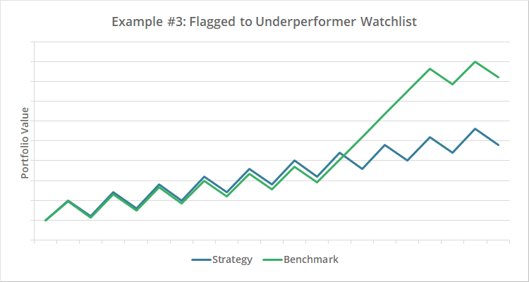 Remember, we’re concerned with a strategy’s performance relative to its own history, so as you’d expect, the following strategy would be flagged: